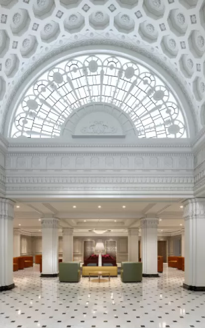 Eines der neuen Kids im Block ist Eaton, Washington D.C, ein Hotel, das weit über die Standarddefinition hinausgeht. Neben seinen über 200 Zimmern beherbergt Eaton einen Radiosender, ein Kino mit 50 Plätzen und vier Essens- und Getränkekonzepte, darunter das sehr Instagrammable Kintsugi – ein Café-Saftbar-Hybrid – und American Son, das ganztägige Restaurant des renommierten Küchenchefs Tim Ma.